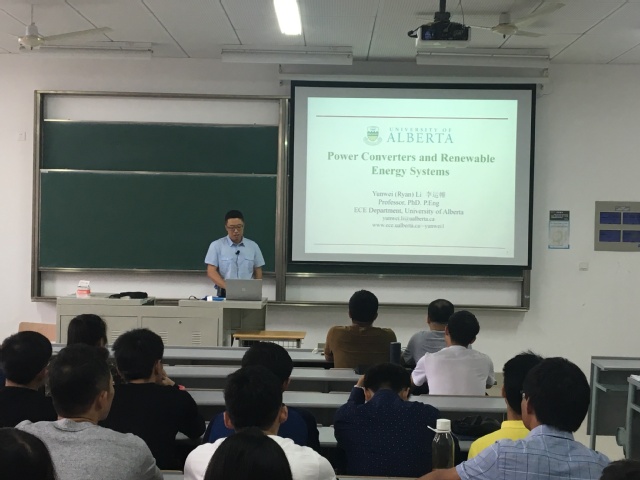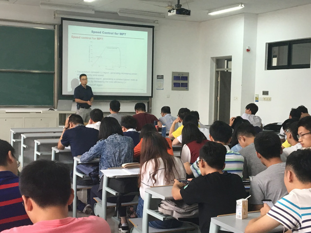 公司海外名师、加拿大阿尔伯塔大学李运帷教授在临港校区D教407为2016级电气工程专业研究生讲授《现代电力电子技术》课程。李教授分别从Power Converters and Their Applications、Wind Power Systems、PV Systems和Energy Storage Systems四个方面,结合自己研究经历与取得的研究成果,为研究生传经送宝。