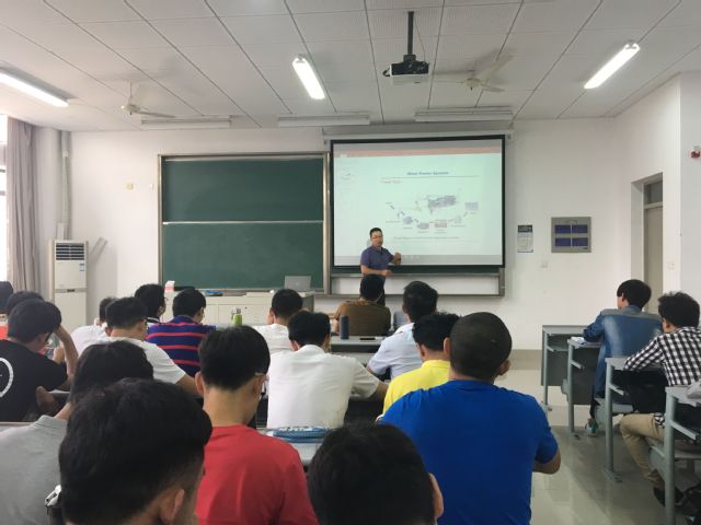 李教授以《PV Systems》为题,首先介绍了光伏发电系统的原理、太阳能板的等效电路;然后介绍了自己在基于软开关的DC/DC变流器、大功率光伏发电并网系统拓扑等方面的研究。其中微电网中变流器并网运行和孤岛切换技术(智能电网技术领域中两种新方法)的讲解开阔了同学们的眼界。