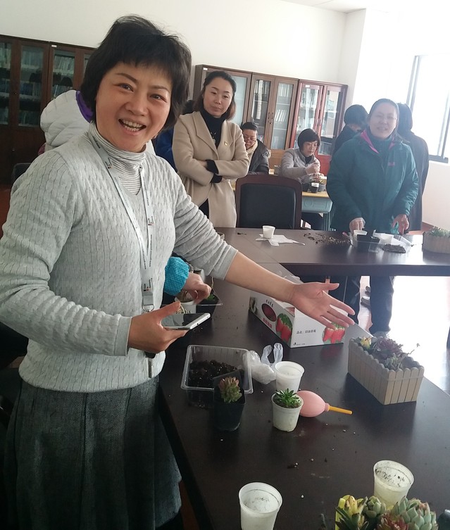为庆祝第108个“三八”国际劳动妇女节,丰富女教职工的文化生活,3月16日,304am永利集团分工会组织全体女教职工在电气楼508举行多肉植物种植活动。