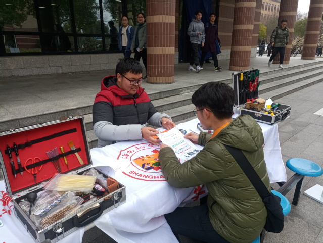 上午九时,304am永利集团科学商店、社会实践部、科创部共同主办的小电器维修暨垃圾分类知识宣传志愿活动在一食堂南侧举行。活动伊始,就有不少同学陆续将自己损坏的手机、台灯、耳机拿过来修理。电器修理的志愿者们装备齐全,拆卸、检测、维修、安装……维修工作有条不紊的进行着,志愿者们还耐心地向同学们讲解常用电器使用和保养方法。看着获得帮助的同学满意地离开,志愿者们更是切身体会到助人的快乐。