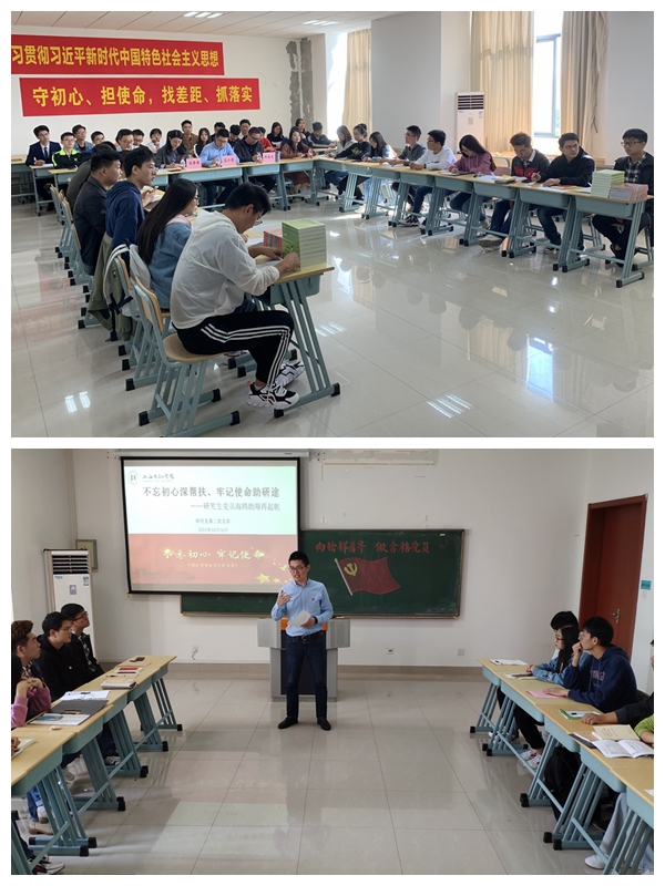 本次活动以四位党员同志朗诵的一首激情澎湃的诗歌《红船,从南湖起航》开场,带领大家共同回顾了我们党建党初期的开拓者们是如何践行不忘初心、牢记使命的;随后由研究生党员代表向全体党员发出了倡议:学习榜样,学习以黄文秀同志为代表的的一大批优秀共产党员的先进事迹,做好研究生党员的科研学术,帮扶身边学弟学妹的考研路,争做新时代有理想、有追求、有目标、有担当的优秀研究生;接下来由三位研究生党员从不同的角度向在场考研同学分享了考研经历,并把最真诚的祝愿送给考研同学,预祝他们能取得好的成绩;在结对赠书环节,18位研究生党员和18位本科生考研同学一一结对并赠送书籍,在接下来的一年里,他们将通过不间断的答疑解惑建立起研途友谊;考研员工代表在发言中表示研究生党员们提供的及时的帮扶对接下来复习有很好的指导作用,同时表达了对公司党委这种好的激励帮扶政策的感激之情,并表示接下来一定认真复习,争取考研成功!