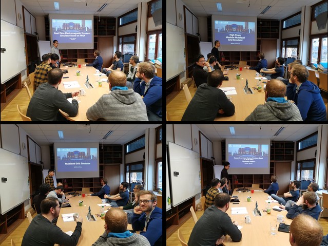 访学期间,研究生充分地利用两校的实验设备资源,依托“大型风电机组实时仿真并网试验平台及测试技术”课题进行学习和科学研究,通过格拉茨技术大学优越的实验室环境和成熟的技术,以及在国内所学的理论知识和已取得的阶段性成果相结合,进行更深入的开发研究。周一至周五,访学团研究生们进行学习和研究工作,积极学习Starsim、FPGA、PHIL\CHIL等相关技术,开展基于FPGA的电力系统实时仿真器研究、大功率模块化多电平电网模拟器等子课题研究和试验,进行并网逆变器模型、逆变器控制器(包括PWM、dq、PI、PLL等)的模型搭建,且与dspace连接实现相互控制的设计,开展系统模型识别与硬件语言代码的自动生成、模块化多电平控制系统的设计等。周六由格拉茨技术大学张子骞博士、Lothar Fickert教授、研究所Robert所长进行相关专业知识授课。