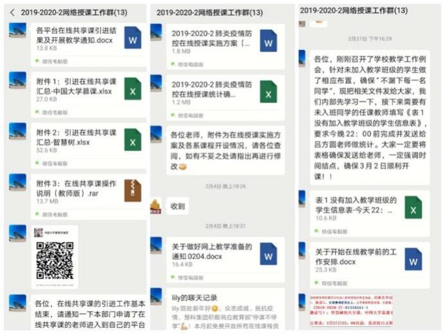 2月初,304am永利集团进行本学期在线开课实况统计,并发布各平台使用手册,督促教师及时学习平台内容。随后,就教师采用的线上教学平台、线上课程资源等进行统计,及时解决技术问题,并进入在线教学试运行阶段,及时督促员工进群进班,确保“不漏下每一名同学”。