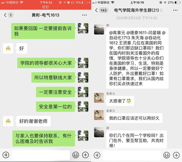 经理陈国初在视频连线中谈到,国内新冠肺炎疫情已得到有效控制,疫情态势积极向好,“家”里一切安好,特别放心不下的是还身处海外的学子。他向同学们表达了全院师生对员工们的牵挂,希望同学们在特殊时期:科学理性,勤洗手、带口罩、不聚集,成为对抗疫情的有力执行者;坚定信心决心,充实生活,做电机精神的积极践行者;要勤学笃行,完成学习任务,做刻苦求学的奋力拼搏者;要互通消息,与家长、老师、使馆都要保持密切联系,全院师生始终同海外学子站在一起,是同学们的坚强后盾。