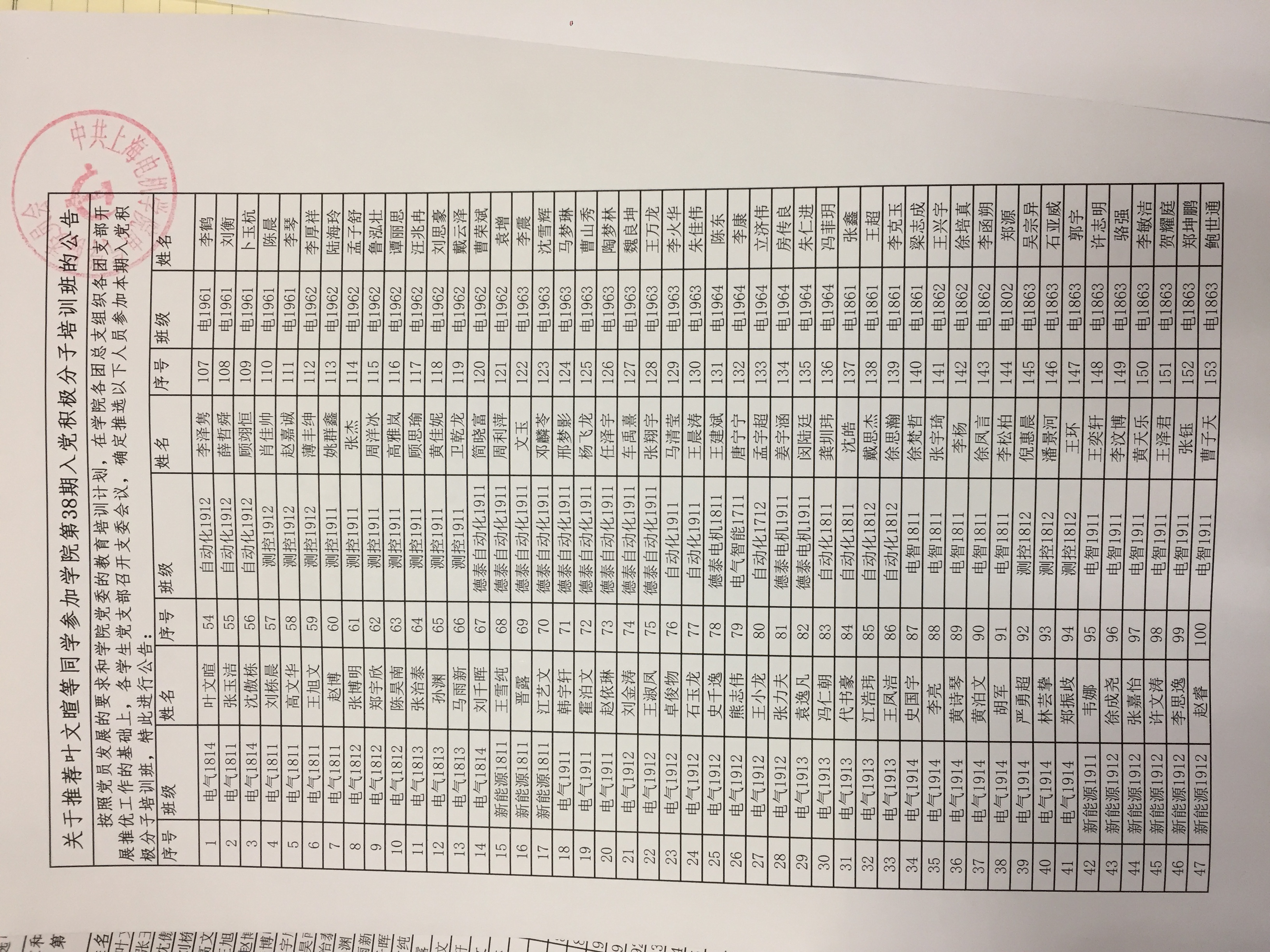 关于推荐叶文暄等同学参加公司第38期入党积极分子培训班的公告