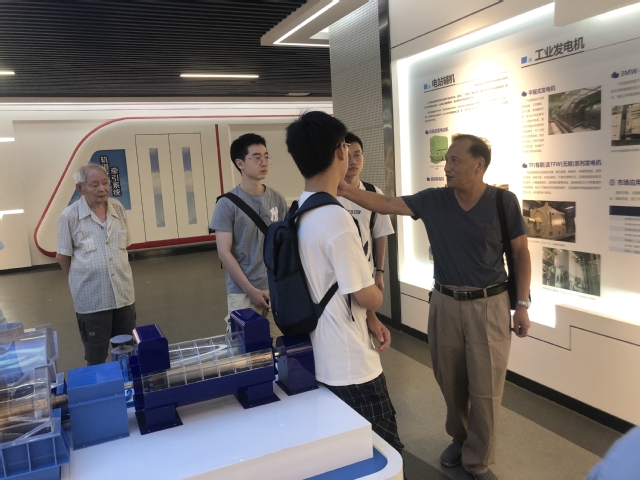 座谈会后,电机师生与老员工共同参观了湘电集团厂史馆、风电车间、车辆分公司。一个个鲜活的老员工的名字、一段段尘封许久的新中国建设工业史被00后员工所熟知。自动化1811班周梓烨感触到:“直径好几米的转子给人一种直观上的视觉冲击,建国70年来,我国成功走出了一条中国特色的新型工业化发展道路,走过了发达国家几百年的工业化历程,创造了人类发展史上的奇迹。这些改变都是这些老一辈的前辈们辛苦努力换来的结果,我们需要将这份精神传承下去,并将其发扬光大。”