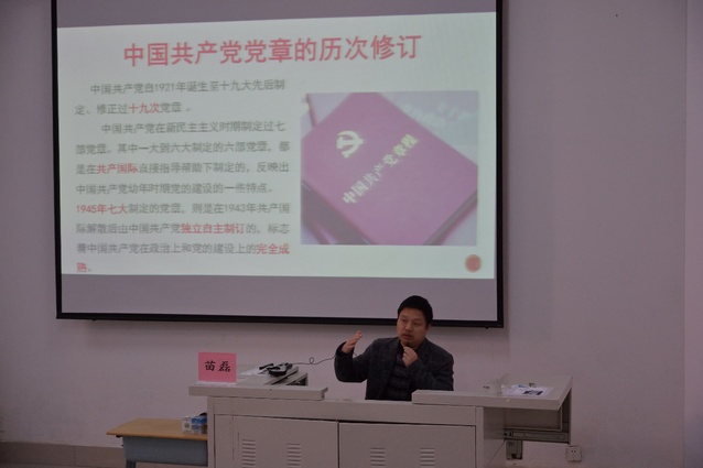 本次开班典礼在《国际歌》中落下帷幕。此后,由马克思主义公司的苗磊博士作主题为《从历次党章修订看党的历史变迁》的专题党课。他从党章修改与党章内容两个方面,就党的历史变迁对学员们进行了发人深省的精彩论述。从在嘉兴南湖的红船上的中共一大到在苏联莫斯科进行的中共六大,从遵义会馆到延安杨家庄,党的数个转折点与党章修改一一对应,如同一本饱含着岁月痕迹的相册。从黑白渐渐变为多彩,从惨烈缓缓转为兴盛……翻开那一份份尘封的光影记忆,周恩来总理那句“为中华之崛起而读书”至今尤在耳畔回响;毛泽东主席“你们年轻人朝气蓬勃,正是兴旺时期,好似早晨八、九点钟的太阳”的寄托振聋发聩;陈独秀“青年之于社会,犹新鲜活泼细胞之在身”的话语慷慨激昂。回首党走过的百年风雨,庄严肃穆的氛围悄然而生。