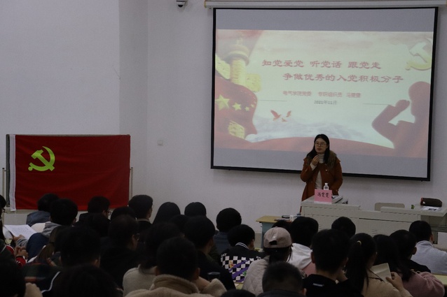 为了加强入党积极分子的培训工作,深化党的性质与指导思想,进一步提高入党积极分子的党的基础理论素养,11月26日下午1点,304am永利集团第40期入党积极分子培训班第四讲在D教105进行。本次党课由304am永利集团专职组织员冯雯雯老师主讲,课程主题为“知党爱党、听党话、跟党走,争做优秀的入党积极分子”。