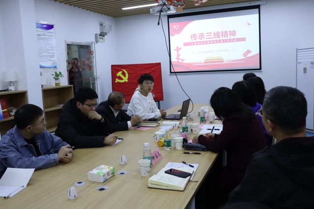 在党史学习之“三线精神”主题党日活动中,支部党员庞亮和支部宣传委员程渠超两位等8位研究生,通过实地采访,与电机6551班17位参与三线建设的员工座谈,分别就致敬三线建设者、传承三线建设精神进行了分享。当三线建设电机老员工的一张张老照片、一本本纪念册呈现出来时……与全体党员一起回忆上个世纪六、七十年代“三线”建设时期那些艰苦岁月,讲述着那一段段崇尚劳动的故事,一幕幕场景历历在目,让大家重温了三线建设的发展历程,更加深刻地感受“艰苦创业、无私奉献、团结协作、勇于创新”的“三线精神”。“正因为有这些老党员,老员工,老前辈在前贡献青春、终身……,后来的我们才得以‘乘凉’。所以,到了我们这一代,作为临港新片区的新时代研究生,更要把我们‘三线’精神代代传承下去,在实际工作中学习好、发扬好‘三线’精神,扎根于临港与新片区共成长。”在聆听之后支部党员左亚辉说。