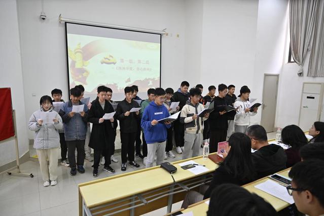 此后,第一、二组的同学们朗诵了《泱泱华夏,吾心所向》,第四组的同学们朗诵了《祖国,我亲爱的祖国》以及第五组的同学朗诵了《峥嵘百年,初心任坚》。三组同学的汇报表演使同学们更加坚定了自己的初心,加强了对党的认同感,争相向党组织靠拢,努力成为一名中国共产党党员,彰显了永远跟党走的坚毅决心,拳拳之心殷殷之情溢于言表。