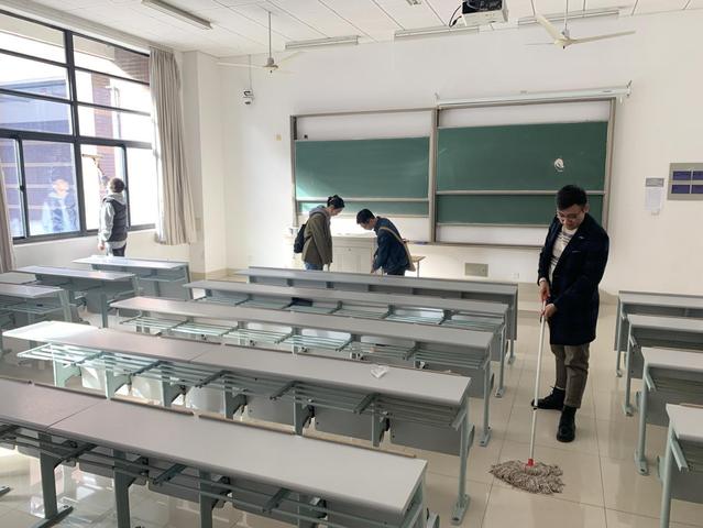 研究生第三小组也为清洁教室贡献了自己的一份力量,组员们一起清洁教室,互帮互助,将党的团结精神很好的体现了,小组成员各有各的感悟。组长也发表了自己的感想:“作为一名志愿者,在助人的同时,也是自助,在使其他生命活出色彩的同时,志愿者也可以从中得到思想上的升华,志愿者服务为我们提供了接触社会的机会,提供了一个锻炼自我的机会。怀有奉献精神,为人民服务这也是每一个党员的基本要求,希望我们每个人可以在生活,学习中起到先锋模范作用,服务人民社会。”