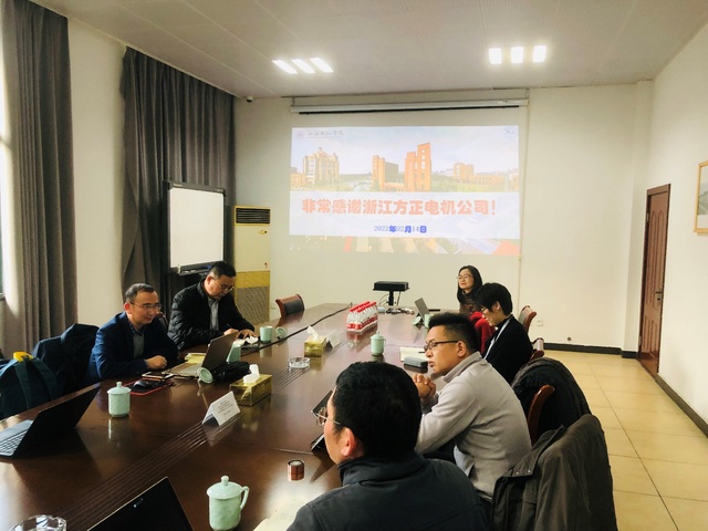 陆丹对陈国初一行到访表示热烈欢迎,并介绍了浙江方正电机有限公司的基本情况、发展历程、产品研发、用人需求等详细情况。