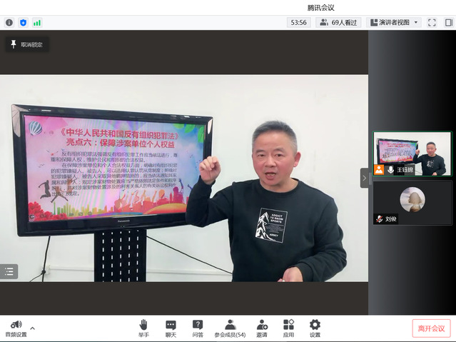 2月24日晚,公司党委组织召开《反有组织犯罪法》专题学习会,邀请青浦区司法局盈浦司法所所长,政工师的董俊华员工通过线上直播为公司全体教职工解读了《反有组织犯罪法》。会议由公司党委书记刘俊主持。