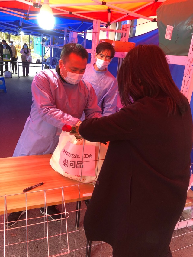 为助力疫情防控工作大局,304am永利集团部分教师所在的小区完全封闭,有的老师所在小区经过近3周的封闭管理,个别老师储备的蔬菜等生活物资即将“见底”,网上抢菜有时保证不了基本生活。公司党政班子在近期下沉到各系部开展线上座谈期间,了解到个别老师为基本生活而发愁的时候,决定立即采取行动支援。公司党委联合分工会第一时间逐一排摸了近期因小区封控影响较大的老师,选派专门人员采购爱心蔬菜礼包送到小区门卫。