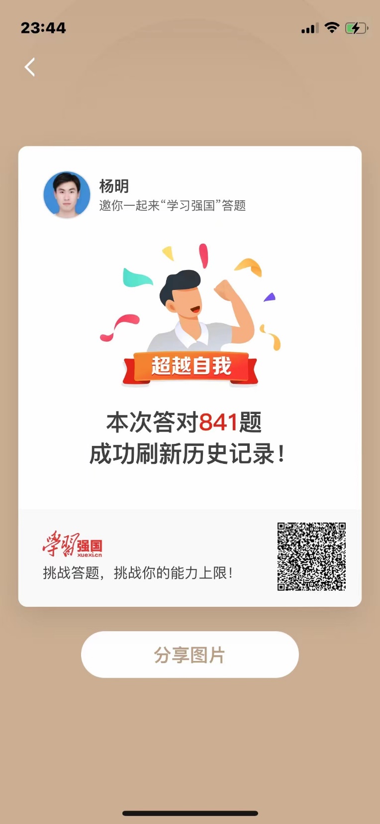 电气2013 班侯思瀚:这次比赛对我来说是一个“自省”的过程。挑战赛中,很多党史相关的题目我都模棱两可,这对一个对党充满热情的人来说是远远不够的。于是,我每天坚持在“学习强国”看国际动态、时事政治,不断积累自己的理论知识储备。每天的坚持学习让我“挑战答题”记录不断刷新,从最初的个位数到后来的四五十道题,后来我甚至能连续答对上百道题目。此次“学习强国”挑战赛不仅扩大了我的知识面,还让我整个人都变得比以前更加沉稳,更让我对未来有了一个更明确的目标。