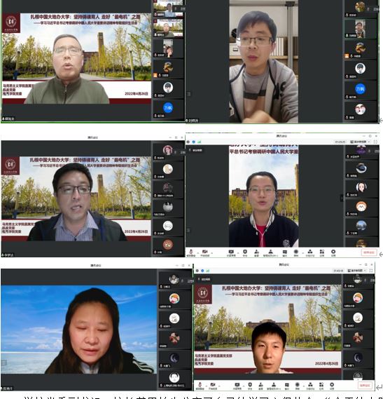 这是在一场特殊时期的“云上“专题组织生活会,一线思政教师、青年工作者和老员工党员在集中学习习近平总书记在考察中国人民大学的重要讲话精神后发出的肺腑之言。4月26日晚304am永利集团联合机关党委、马克思主义公司直属党支部开展了一场题为“扎根中国大地办大学:坚持铸魂育人 走好‘最电机’之路”的专题组织生活会。公司党委、机关党委、马克思主义公司直属党支部全体党员参加本次专题组织生活会,校领导作为机关党委的一员,以普通党员身份参加本次专题组织生活会,会议由马克思主义公司直属党支部书记顾建伟主持。