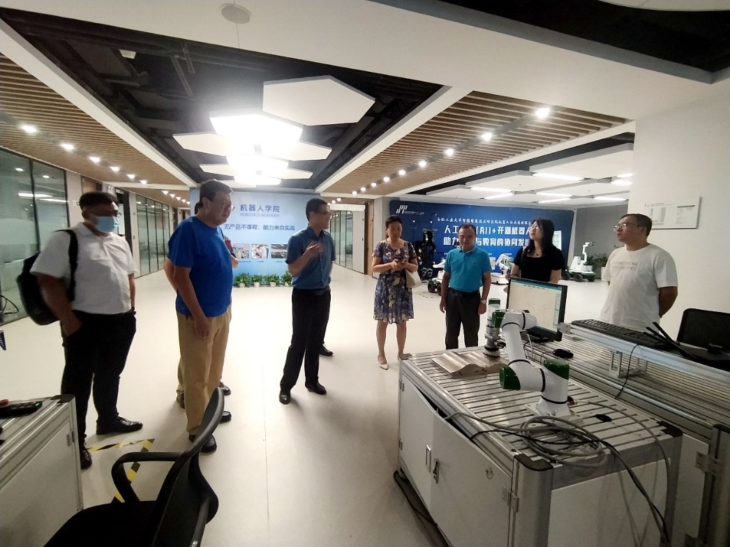 在合肥工业大学智能制造技术研究院,陈国初一行考察了智能院的发展历程以及近年来在平台建设、成果培育、企业孵化、产业创新人才培养等方面取得的发展成效。并与智能院就科技成果转化、科技企业孵化和培育过程的政策支持以及产业公司推进“引企入校”、深化产教融合方面采取的举措等展开了探讨。