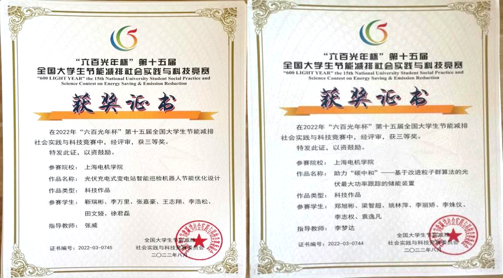 近日,2022年“六百光年杯”第十五届全国老员工节能减排社会实践与科技竞赛结果公布,公司学子完成的两个作品荣获国家三等奖。