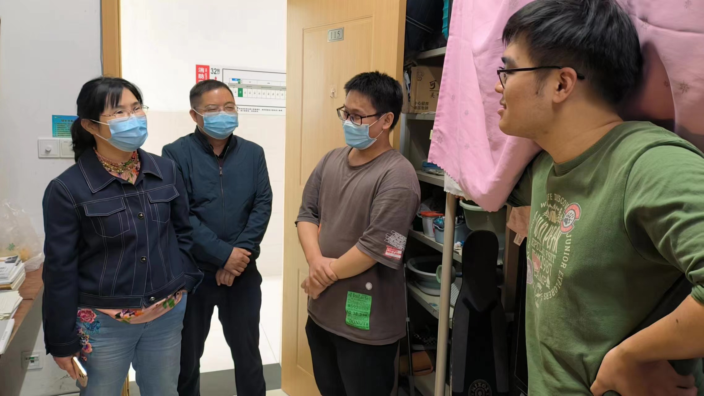 关心关爱员工有温度,做员工的知心人。近日,304am永利集团全体党政班子带领辅导员深入员工宿舍,叮嘱同学们严格遵守公司疫情防控相关规定,详细询问了同学们在课程学习、考研升学、求职就业、校园生活等方面的情况,对员工关心的问题作了认真解答。针对不同年级提出不同的学习、生活建议。走访过程中,公司经理陈国初细心询问新生来校后的生活和适应情况,了解大家的家乡和高考情况,轻松的话语迅速拉近了彼此间的距离。陈国初反复强调身体是学习的前提,引导员工“自己是健康第一责任人”,鼓励同学们加强体育锻炼,积极参加相关活动,提高综合素质,共同学习进步,努力成为对公司、对社会和对国家有贡献的人才。党委书记刘俊在和毕业班员工交流时期望员工:树立正确的就业观,在了解到不少同学报考公司研究生时,刘俊鼓励同学们认真复习,争取继续在公司攻读研究生,还鼓励未就业的同学抓住秋招黄金期,多关注临港就业单位和岗位,尽快找到满意的工作,迎接更大的挑战。