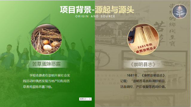 近年来,304am永利集团志愿者团队在崇明开展社会实践活动时偶然发现当地有苦草煮鸡蛋用于产后恢复的习俗,因此萌发出挖掘苦草秘密的好奇心。随后查明了苦草主要成分,为苦草抗菌消炎、抗衰老找到了科学依据。并在此基础上,依托崇明玉海棠生态农业科技有限公司,探索出从苦草食品到苦草产品、从苦草产业到苦草文化,既能发展当地经济,又能保护生态环境的特色发展之路,用实际行动践行了习近平总书记“绿水青山就是金山银山”理念。