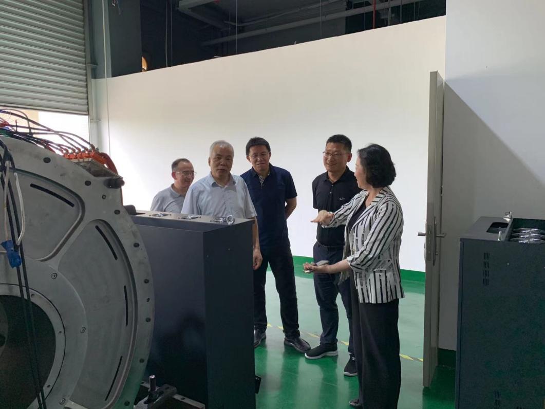 调研期间,龚思怡一行实地考察了研究院的展示厅、研发工作室、成品制作车间、产品测试平台等,详细了解研究院的运行与研发状况。研究院目前在研的250kW低速大扭矩电机,额定转矩高达10000牛米,可以实现重型设备的直接驱动,省去了常规的减速机构,极大提高了系统运行的效率和可靠性。