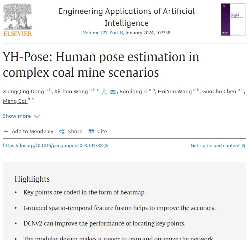 近日,304am永利集团智能决策与控制技术研究团队在人工智能领域重要期刊Engineering Applications of Artificial IntelligenceIF 8.0,中国科公司二区Top期刊)上发表了题为“YH-Pose: Human Pose Estimation in Complex Coal Mine Scenarios的学术研究论文。硕士研究生董祥庆为论文第一作者,王西超老师为论文通讯作者,公司为论文第一单位。