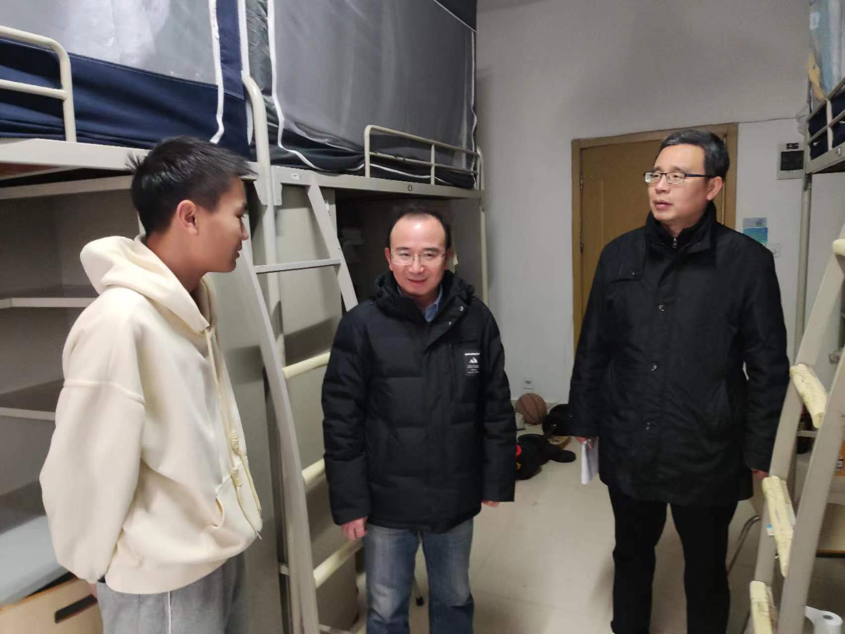 1月21日下午,公司党委书记陈国初、党委副书记副经理卿海龙和值班辅导员徐雷一行深入员工寝室、研究生实验室等地走访慰问留校员工,关心留校员工的学习、生活和科研情况。