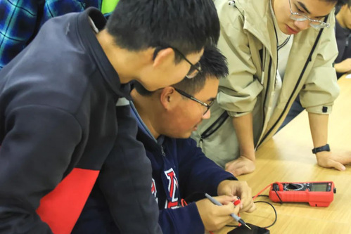 在课程讲解中,贺浩彬手把手传授如何使用万用表、电容笔、电烙铁等工具,并详细演示了如何准确识别电阻参数,为同学们夯实基础专业知识后进行更有创新精神的实践奠定了坚实基础。这种实际操作中融入创新理念的方式,不仅深化了同学们对专业知识的理解,也为未来在相关领域的创新奠定了有力的基石。