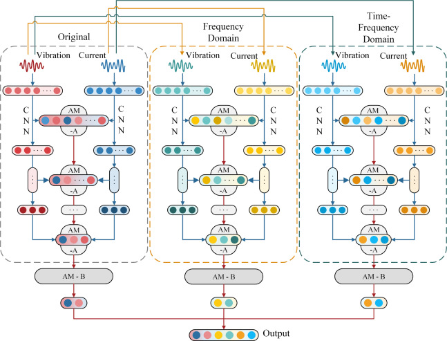 通过对深度学习和多传感器数据的应用,可以自动提取故障特征并整合有价值的信息,以解决电机轴承故障诊断中的复杂挑战。大多数现有的融合模型主要专注于原始时间序列信号,信息提取主要局限于时域,没有延伸到多个变换域。此外,在大多数融合模型中,传感器融合水平相对较简单,这可能导致信息之间的相关性和互补性被忽视。