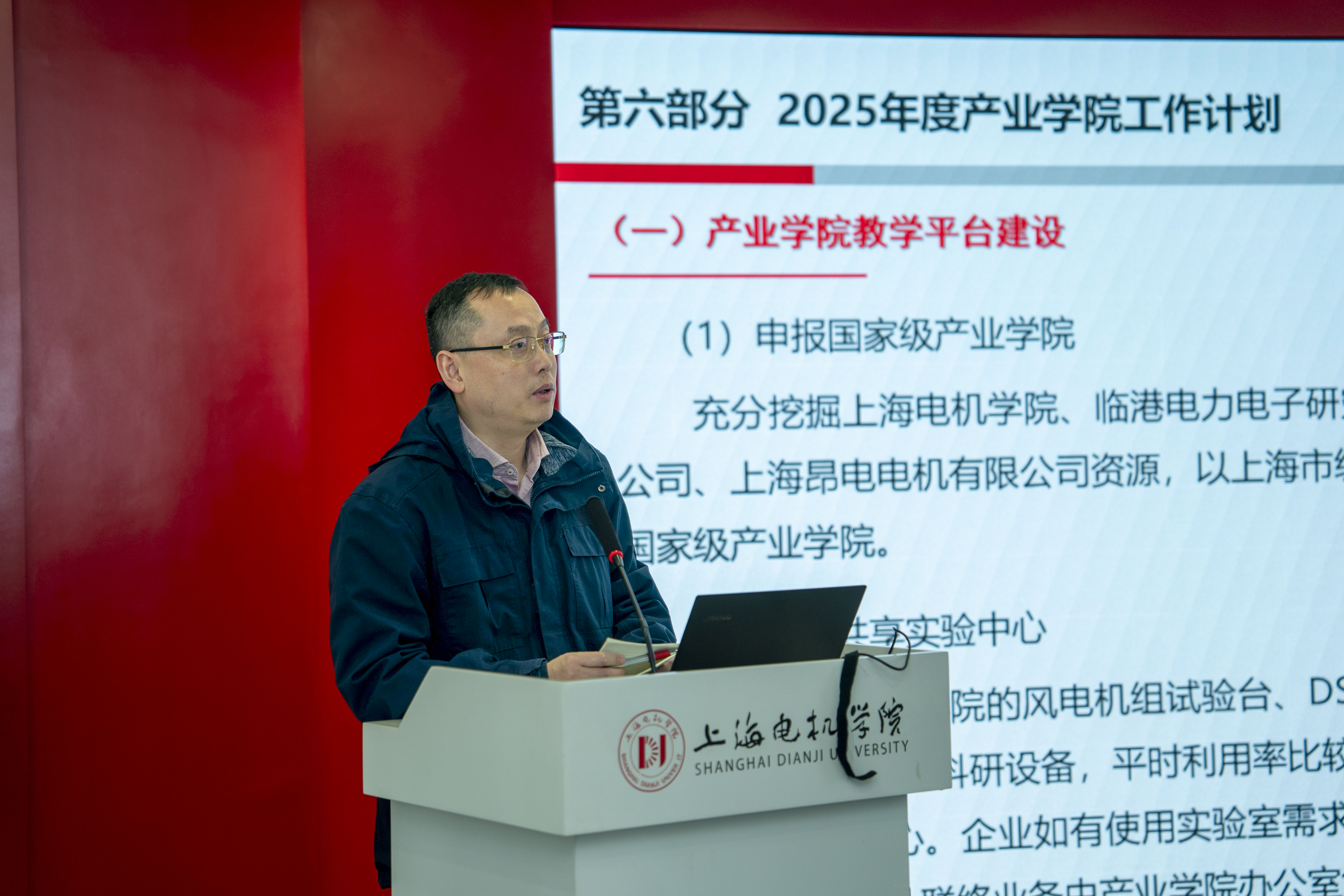 会议伊始,文传博向参会企业领导、专家的到来表示欢迎。沈捷汇报了2024年度临港电机产业公司工作总结及2025年度工作计划。他表示,在过去一年里,产业公司圆满完成了“双高”计划与应用型本科人才培养方案的制定工作,与企业开展深度合作,卓越班首次深入企业,并开展为期一个月的企业实训。产业公司成功获批上海市高压电机数字化智能运维专业技术服务平台,职业资格培训项目也顺利开展,多名学员取得西门子PLC、ANSYS职业资格培训结业证书。公司还创办了竞赛技能创新训练营、电机智能控制创新训练营及自动识别创新训练营,获得多项上海市及国家级学科竞赛奖。2025年临港电机产业公司将并与理事企业携手共建实验中心、产教融合实践基地,电机特色班等,进一步提升产业公司的办学水平和人才培养质量。