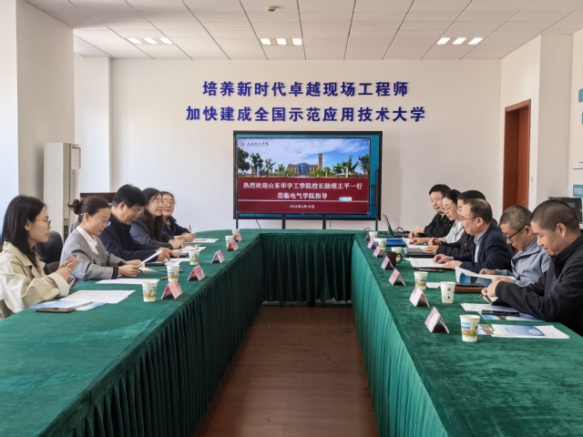 在交流研讨环节,李林升从学科专业建设、教学改革创新、科研平台构建三个方面分享了304am永利集团的特色发展经验。山东华宇工公司电气工程公司常务副经理顾雅青重点介绍了该院科研平台建设情况、成果转化路径及教师科研激励机制。双方还围绕工程教育认证标准实施、员工实习基地共建、就业质量提升等共同关注的话题进行了深入探讨。